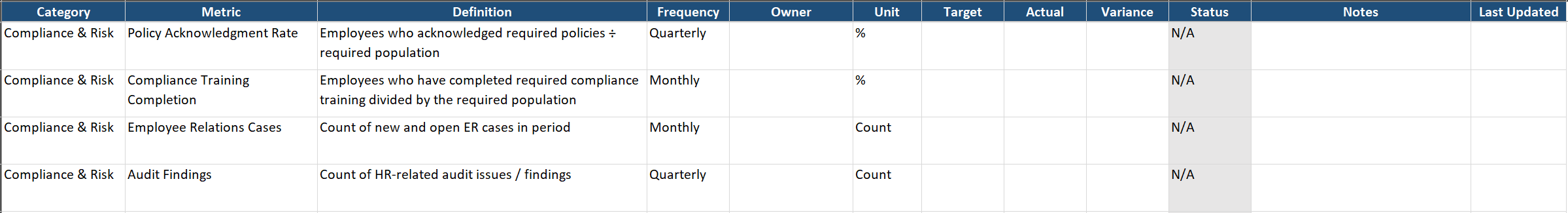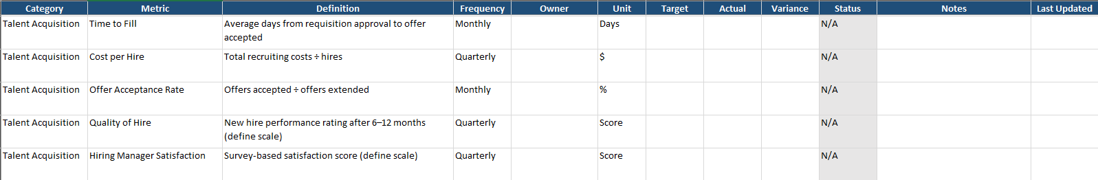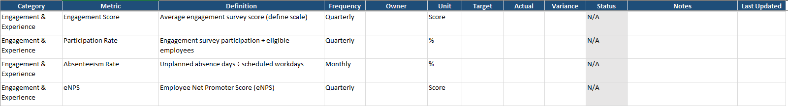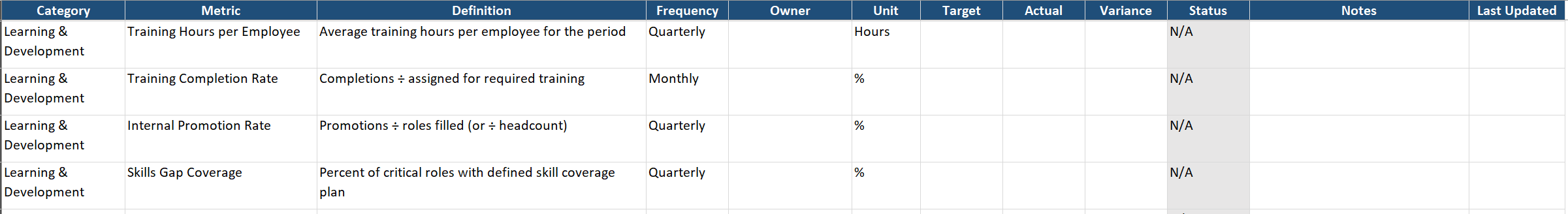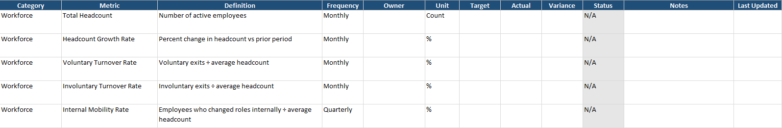 - Assign metric owners within HR.